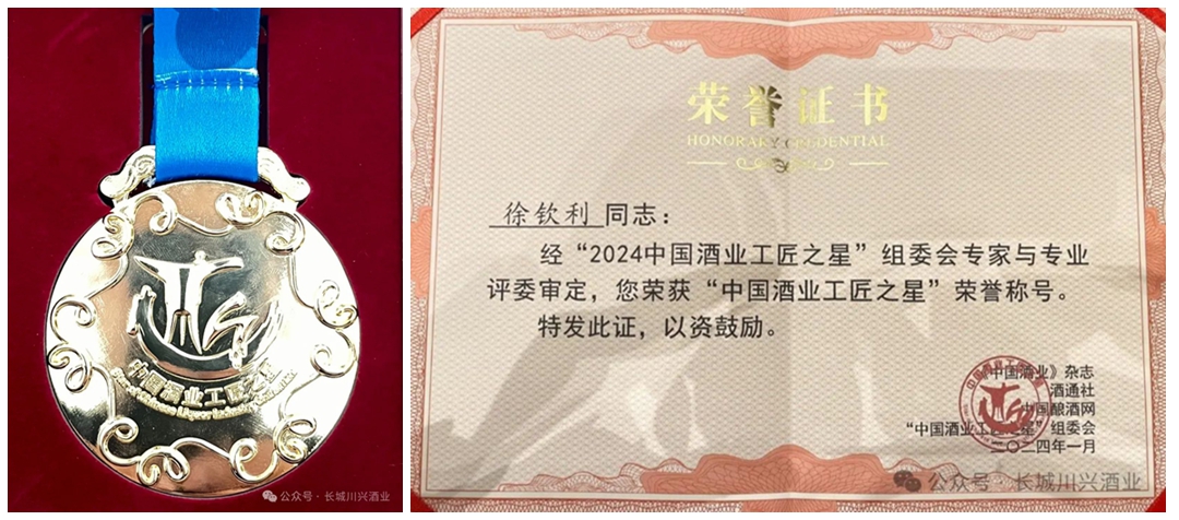 2024年1月13日,由《中国酒业》杂志、酒通社、中国酿酒网联合全国各省市酒业协会组织开展的“第二届中国酒业工匠论坛暨工匠之星颁奖盛典”在天津隆重召开,成都长城川兴酒业有限公司质量部部长徐钦利同志荣获“中国酒业工匠之星”荣誉称号。